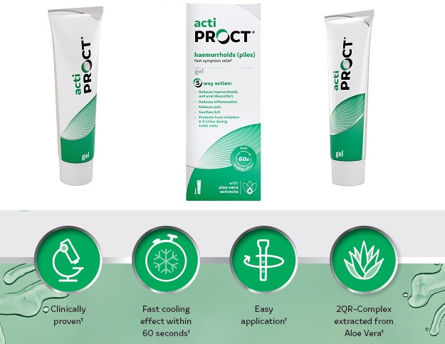 Apply over-the-counter medications to the affected area. Use a clinically proven product suitable for treating Grade 1 or 2 haemorrhoids such as ActiProct® Gel. It contains natural ingredients, such as 2QR-Complex, extracted from Aloe Vera, which provide rapid relief. This gel is easy to apply, and within 60 seconds has a cooling effect that soothes haemorrhoids and anal discomfort by reducing inflammation, pain and itching. It also protects the skin from irritation and friction during toilet visits.6